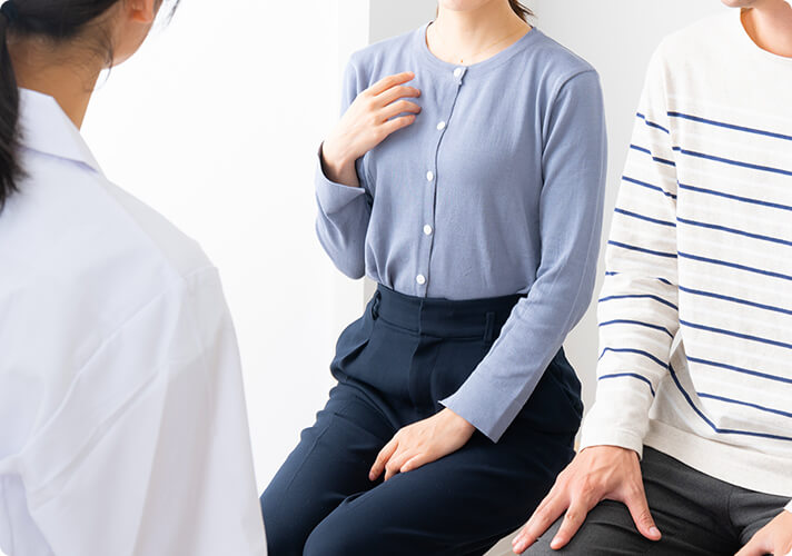 - 超音波(エコー)で、乳房の内部に腫瘍などの病気がないかを調べます。